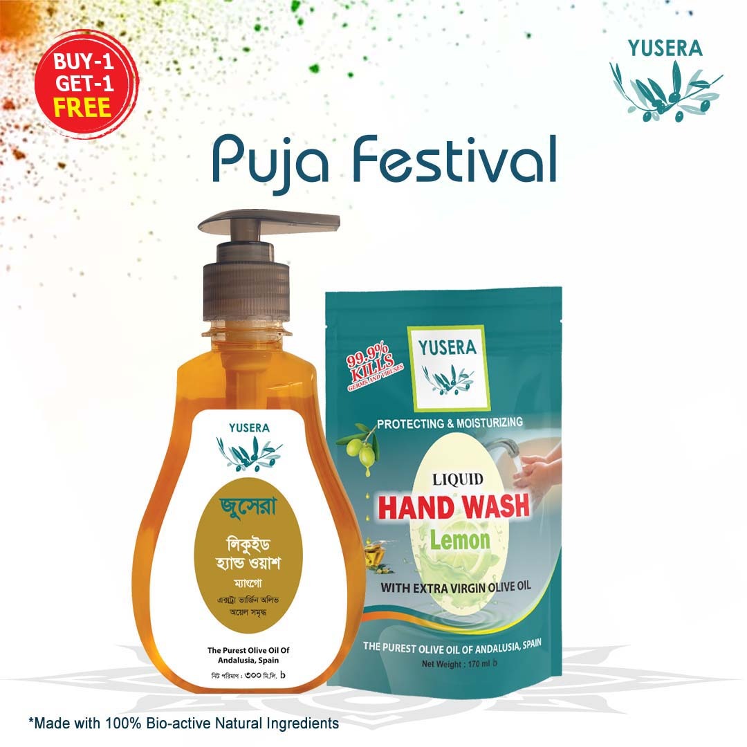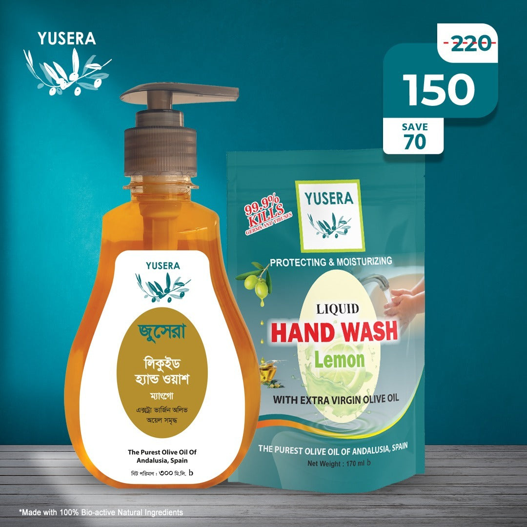Yusera Hand Hygiene Care Combo – Mango Liquid Hand Wash 300ml + Lemon Refill 170ml