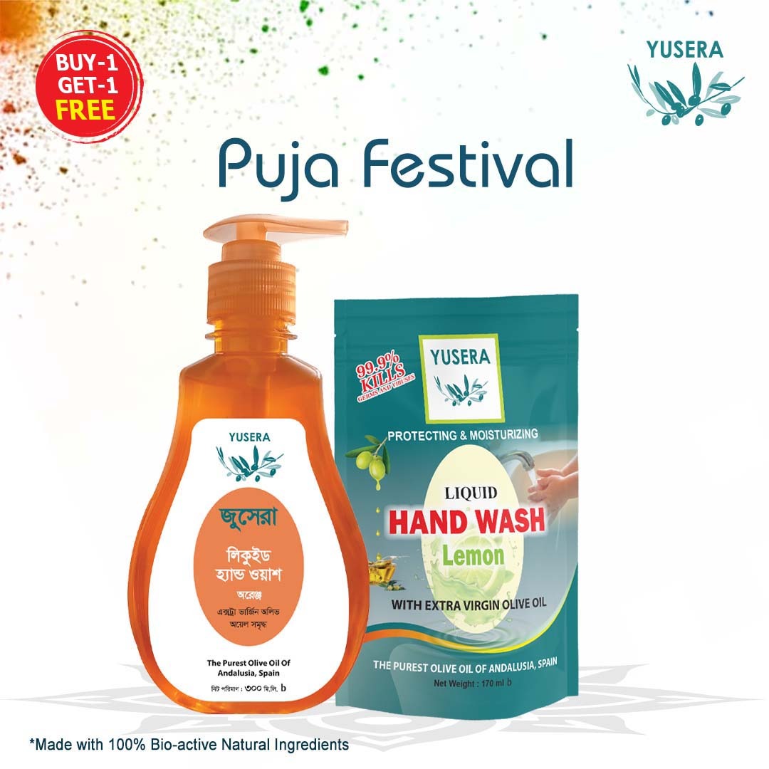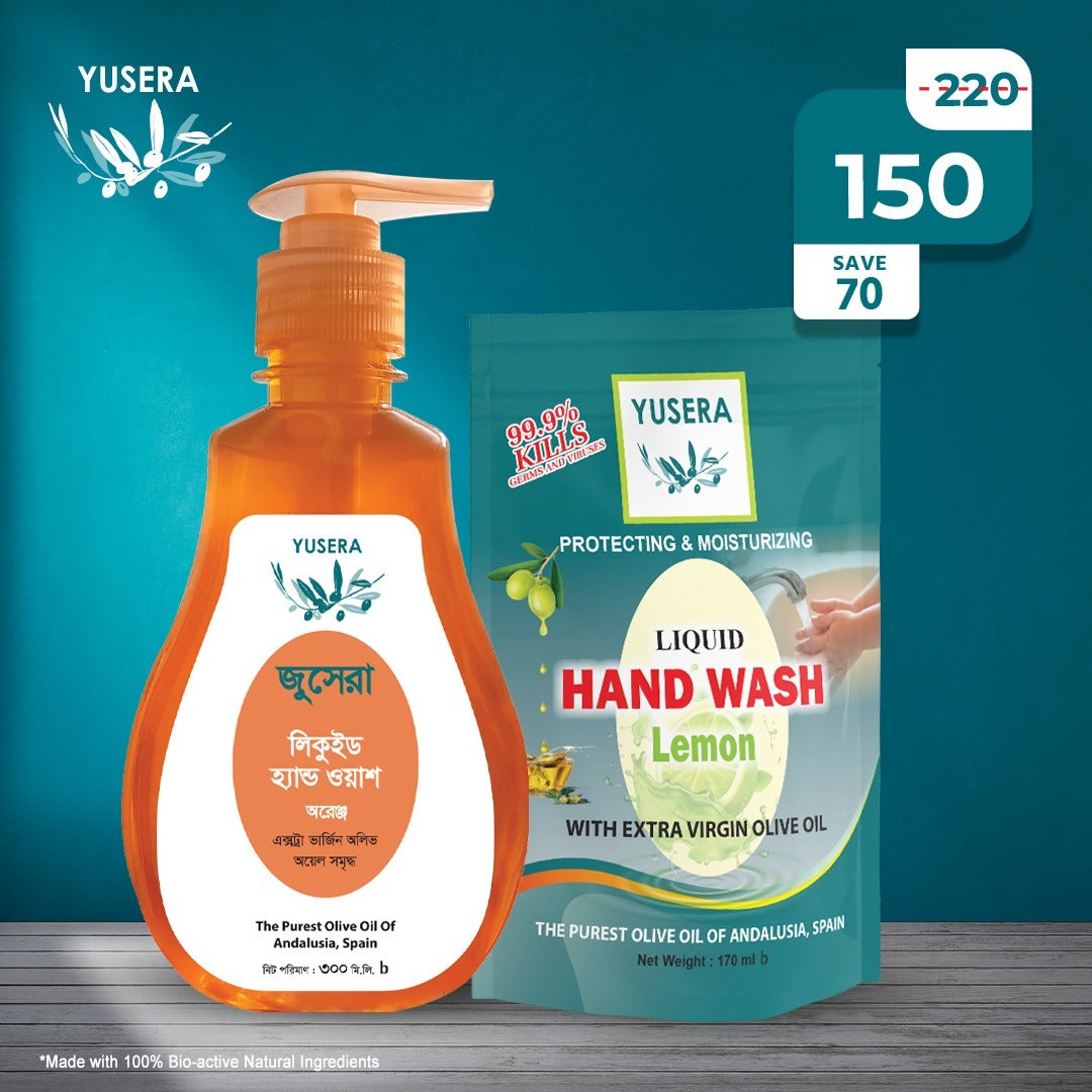 Yusera Hand Hygiene Care Combo – Orange Liquid Hand Wash 300ml+ Lemon Refill 170ml